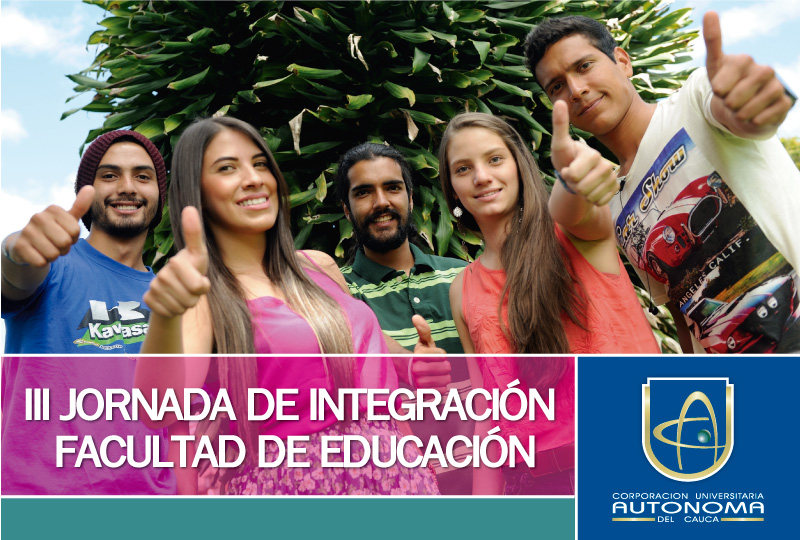 La Facultad de Educación invita a estudiantes, docentes y administrativos a participar en la III Jornada de integración, que se desarrollará este viernes 20 de mayo a partir de las 7:00 a.m. en la sede campestre El Aljibe de la Corporación Universitaria Autónoma del Cauca.