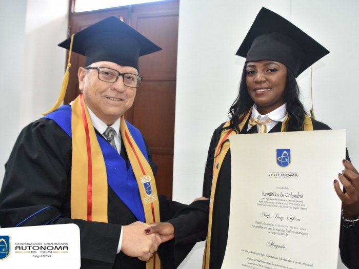 Con una emotiva ceremonia se llevó a cabo el grado privado de Neifri Díaz Viáfara, quien recibió su título profesional como Abogada. Todo el éxito para nuestra nueva profesional.