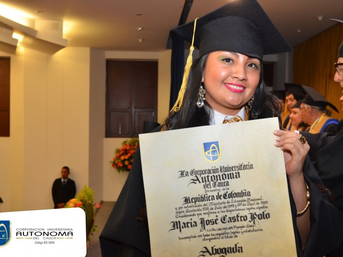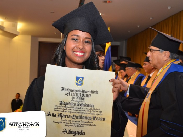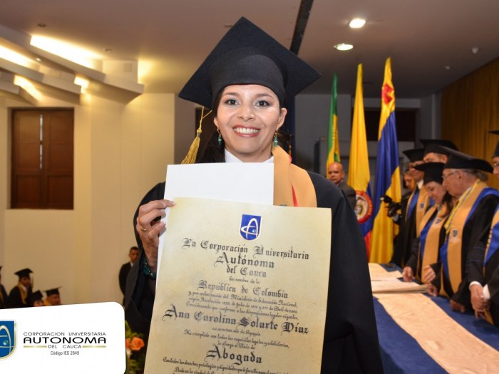 La Corporación Universitaria Autónoma del Cauca felicita a sus nuevos egresados por alcanzar los logros profesionales propuestos, sabemos que a partir de ahora llevarán en alto el nombre de nuestra Institución. A todos ellos, les deseamos un futuro lleno de éxitos. ¡Felicidades!