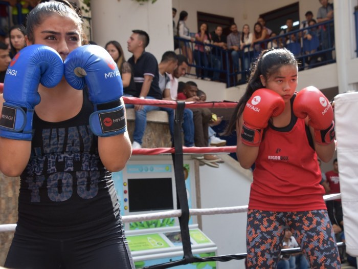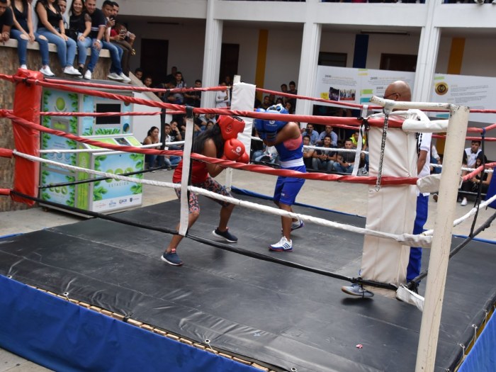 Una tarde de mucha adrenalina y público alentando tuvo la jornada recreativa de boxeo que se llevó a cabo en la institución el día de ayer. El evento fue organizado por el Área de Deporte y Bienestar con él ánimo de convocar a los estudiantes interesados en hacer parte de un semillero deportivo en esta disciplina.