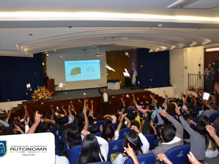 En el marco de los 38 años de la Corporación Universitaria Autónoma del Cauca, del 17 al 20 de octubre se dio inicio a la Semana Universitaria. Fueron cuatro (4) días en que los Uniautónomos del Cauca disfrutaron de Concurso de ideas innovadoras, foros, muestra gastronómica y artística, conferencias, eventos deportivos, fiesta blanca y lanzamiento de la estrategia de Acreditación.