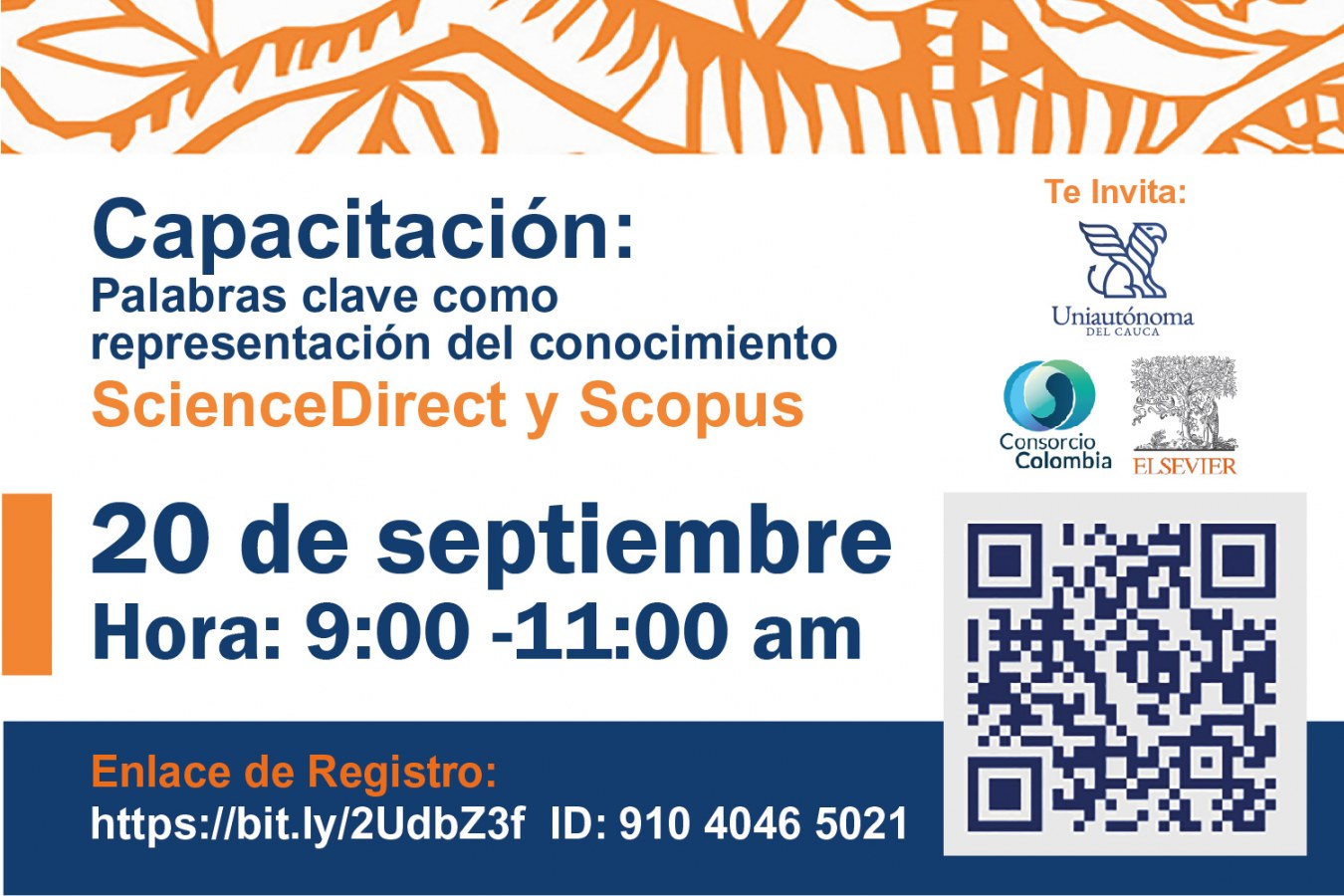 La biblioteca “Bruno Mantilla Pinto” invita a la comunidad académica a participar en la capacitación “Palabras clave como representación del conocimiento”, a través del uso de las bases de datos de ScienceDirect y Scopus.